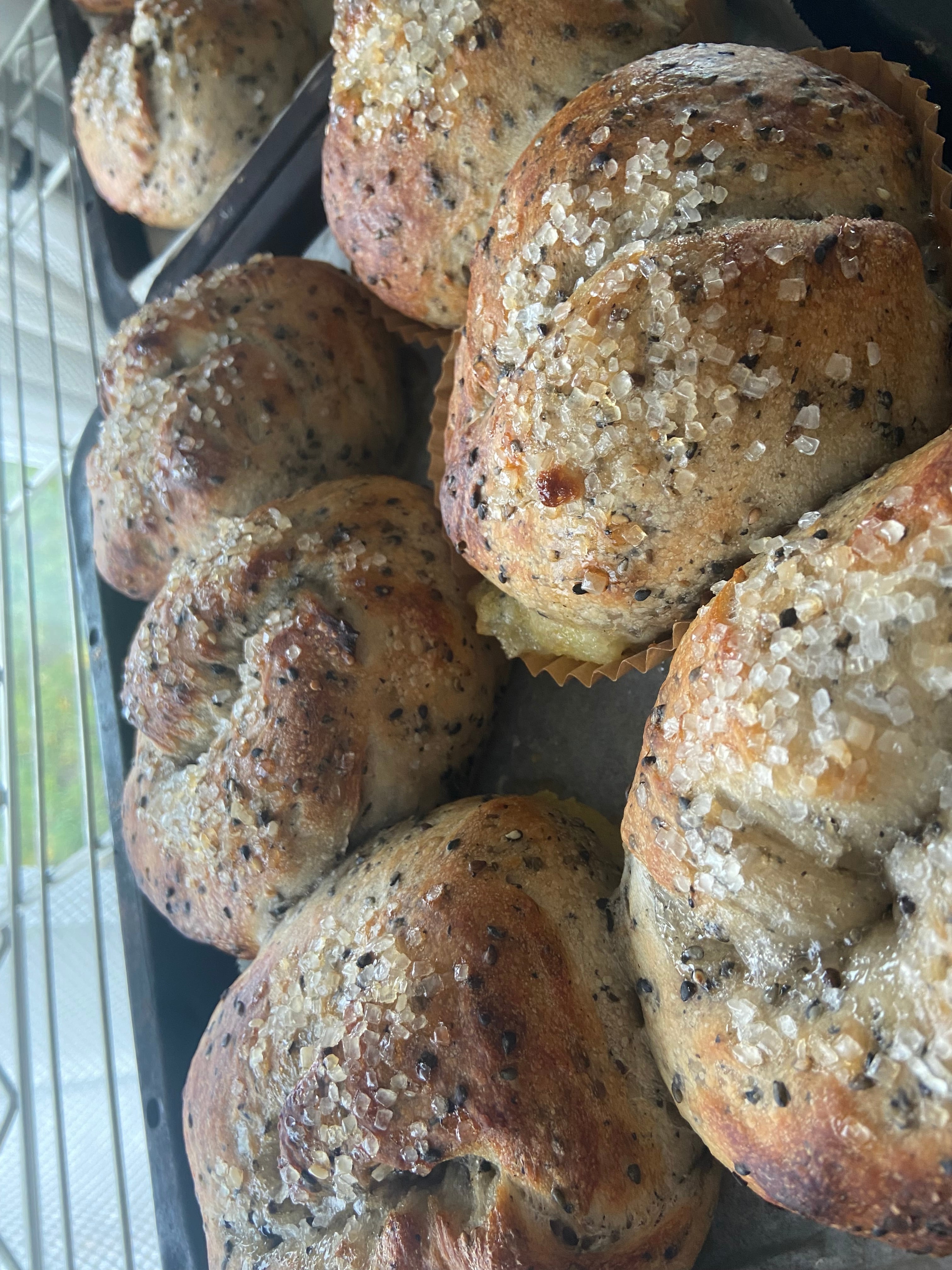 全てのベーグルに同じ面台、茹で窯を使用して