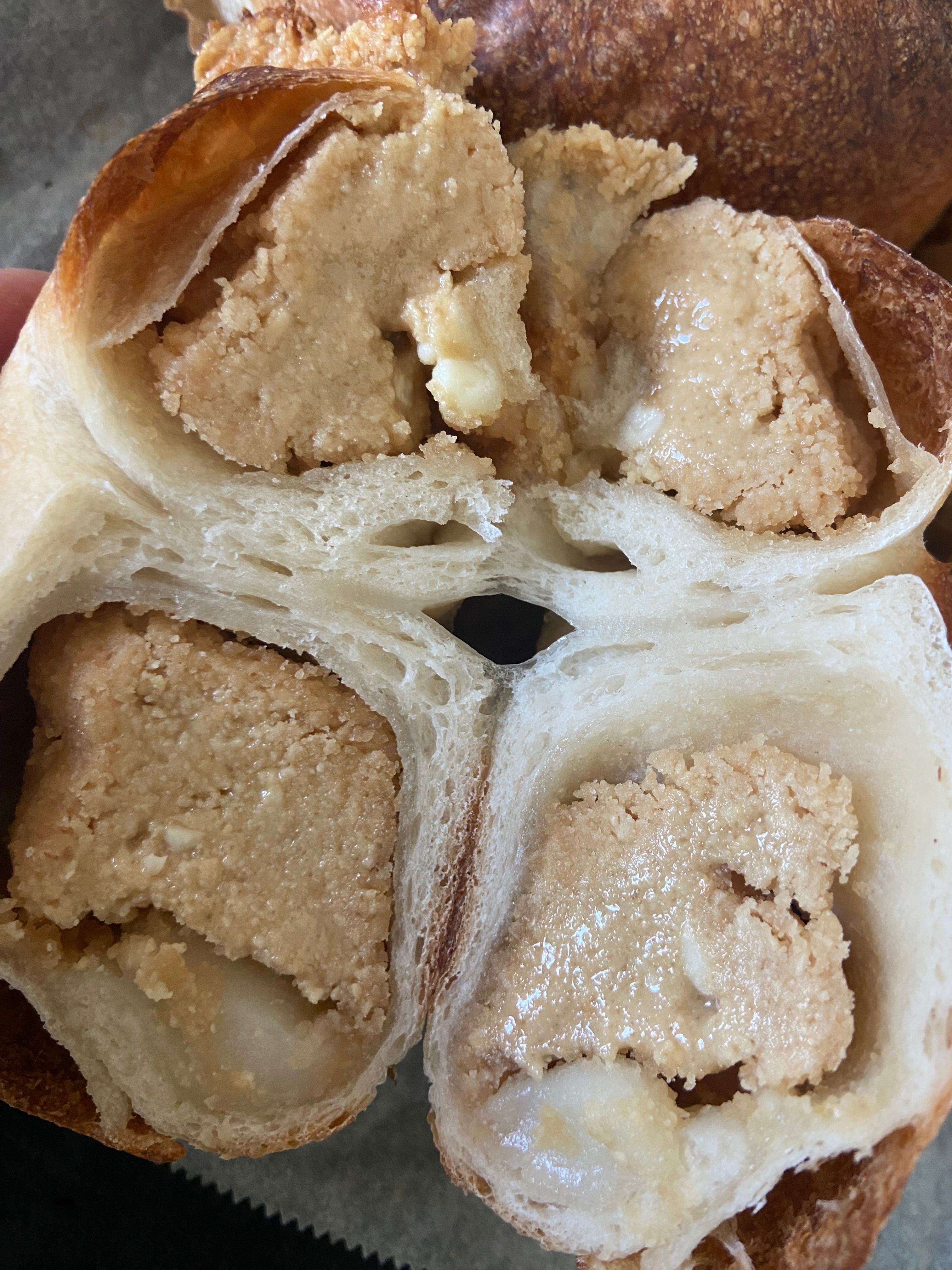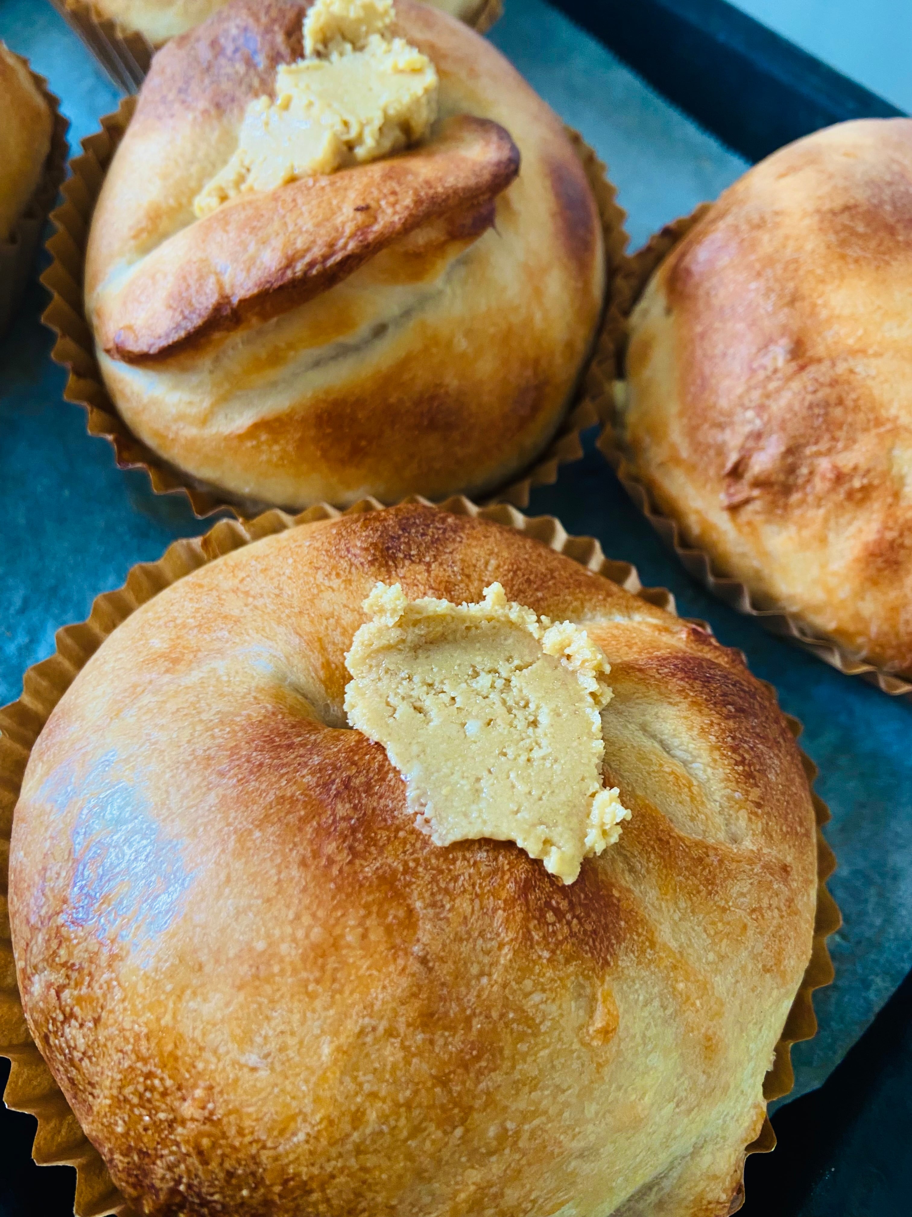 自家製ビーナッツバターをたっぶり巻き込んだ甘じょっぱさとホワイトチョコの甘さが美味しいベーグルです。他にもきんぴらや濃厚ガトーショコラなどもりだくさんのラインナップです。